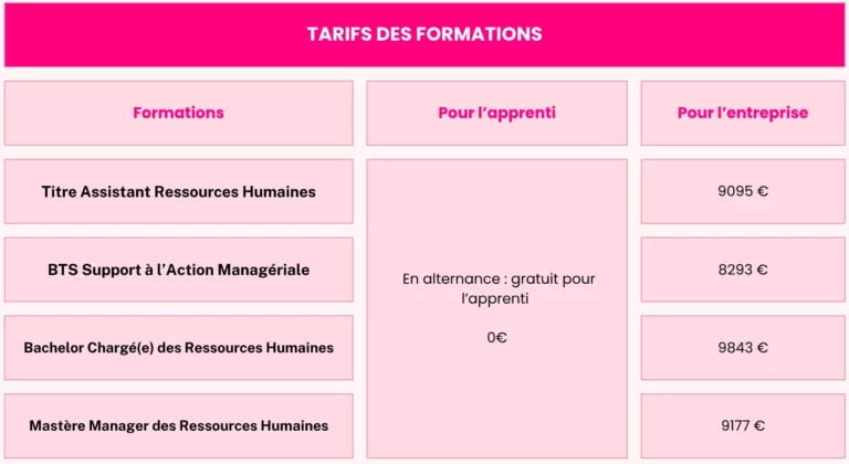 Tous nos étudiants peuvent se former en contrat d’apprentissage, dans tous nos programmes du BTS Support à l’Action Managériale au Mastère Manager des Ressources Humaines en passant par le Bachelor Chargé(e) des Ressources Humaines.